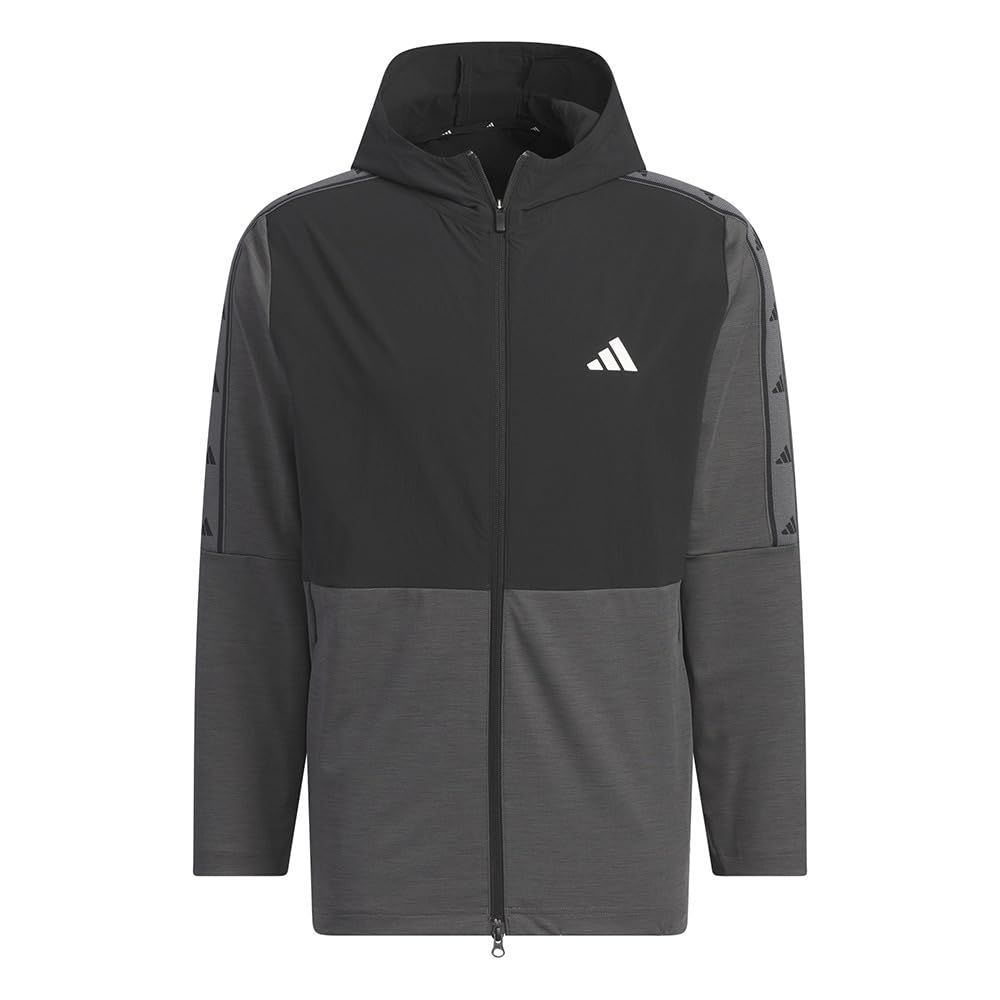 アディダスゴルフ ゴルフジャケット ファブリックミックスストレッチ フーディー メンズ ブラック ダークグレイヘザー XL