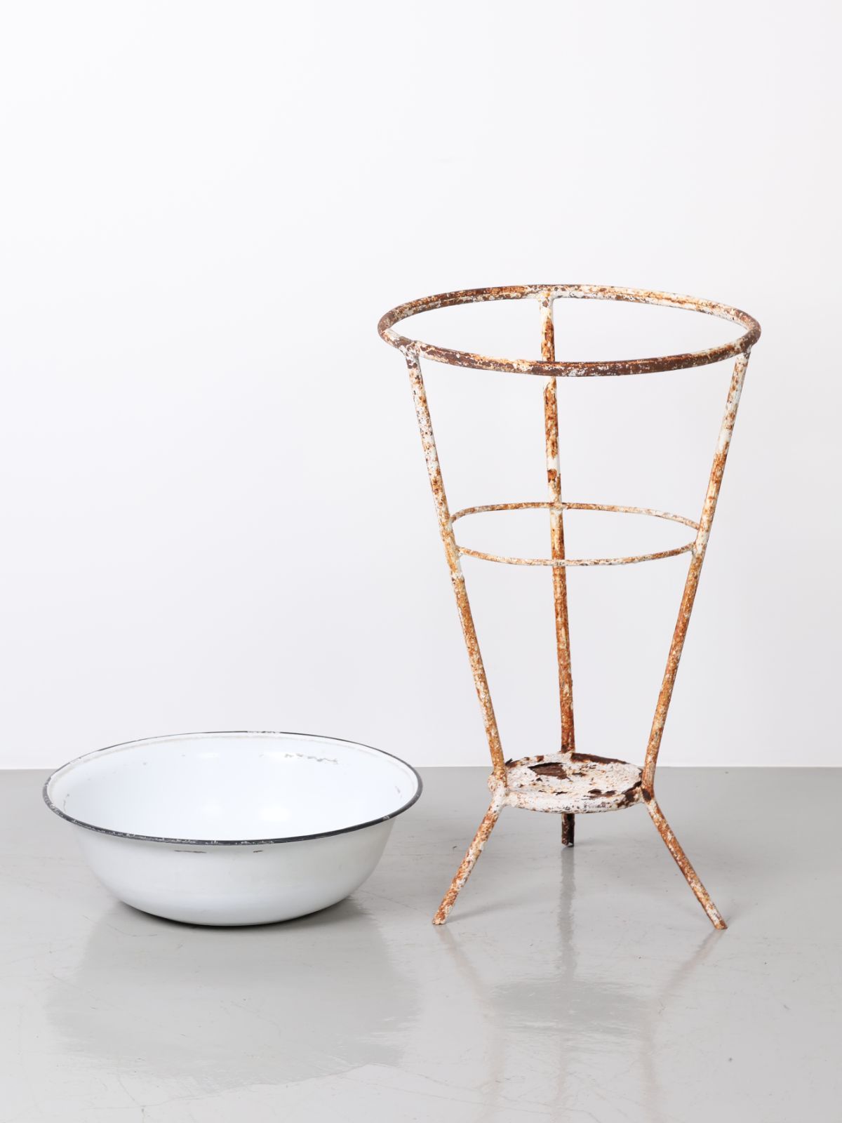 1950 - 60年代 ヴィンテージ エナメル ウォッシュシンク アイアンスタンドベース付き