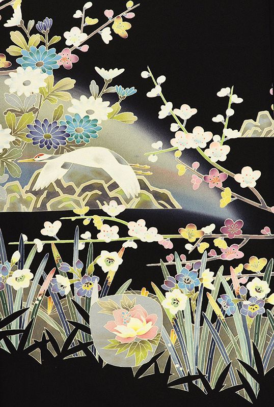 ■格調と華やかな上品さを大切に手描きで加賀五彩の世界を表現した上質な黒留袖です。