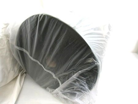 外袋にガムテープの貼付、傷や破れ、汚れの付着が見受けられます。