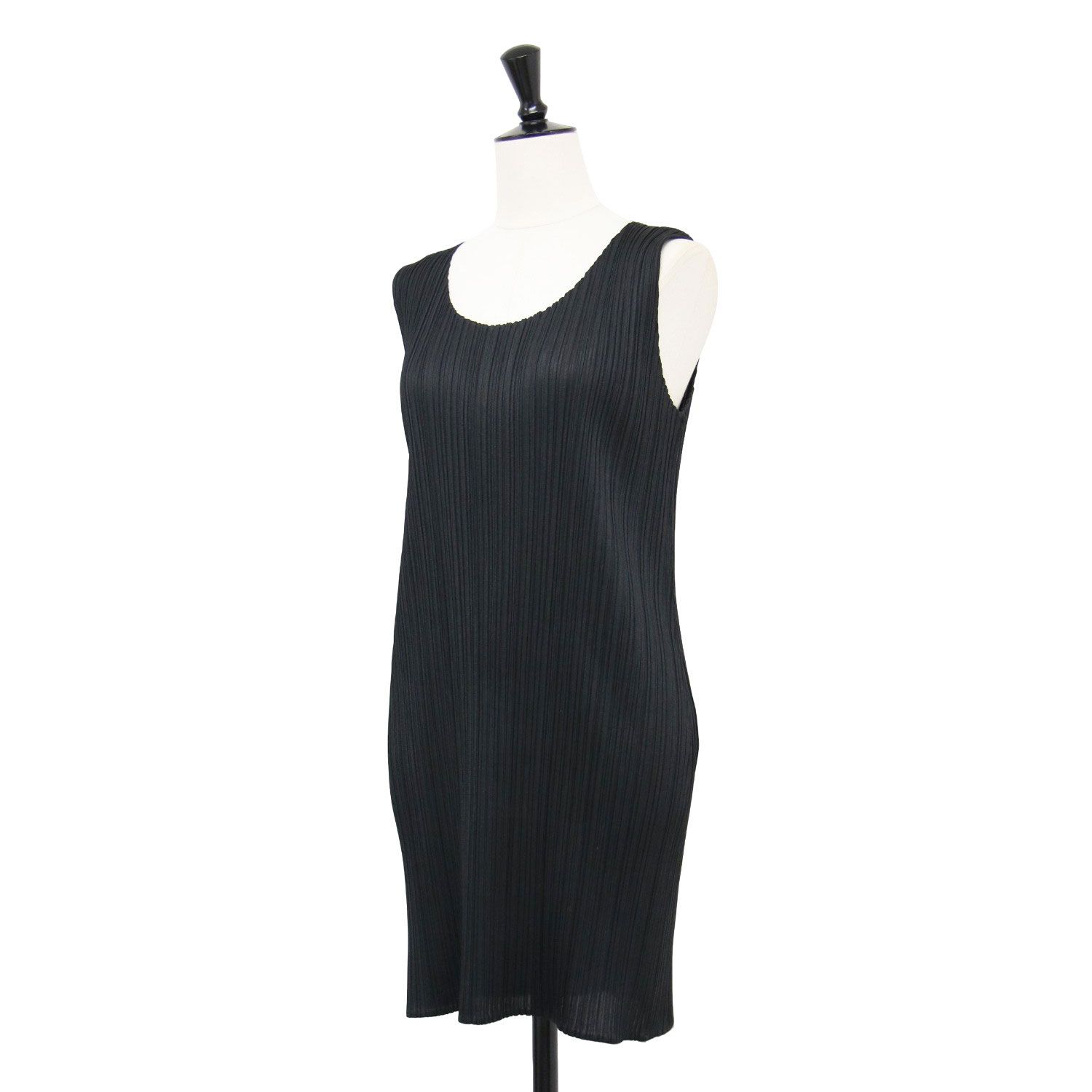 PLEATS PLEASE プリーツプリーズ ワンピース ブラック 黒 サイズ 3 L プリーツ ノースリーブ チュニック ミニ丈 ラウンドネック トップス ドレス レディース