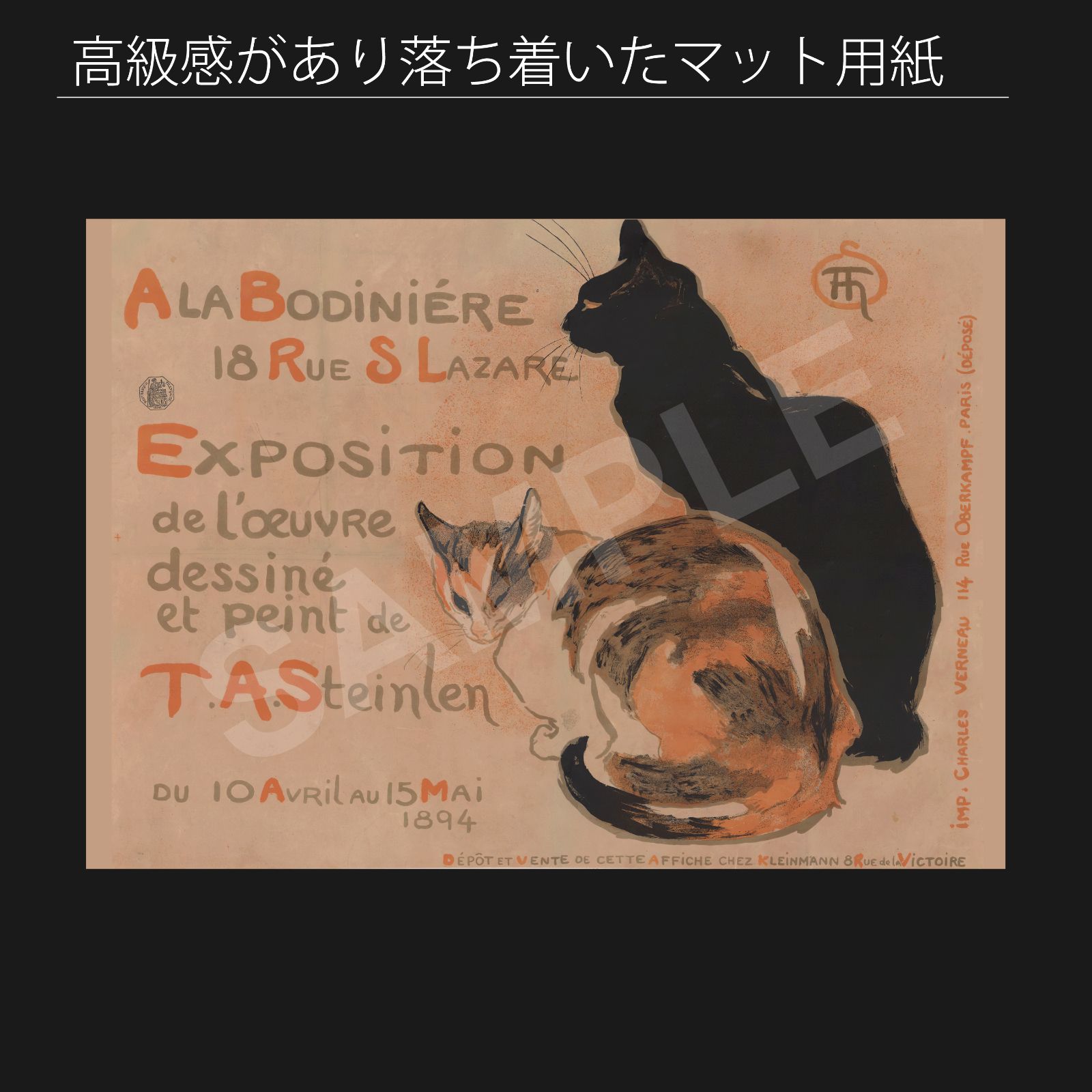 テオフィル アレクサンドル スタンラン Theophile Alexandre Steinlen ラ ボディニエールでの個展ポスター 三毛猫 黒猫 1894年 アートポスターA 2 マット紙 フレーム付 IN