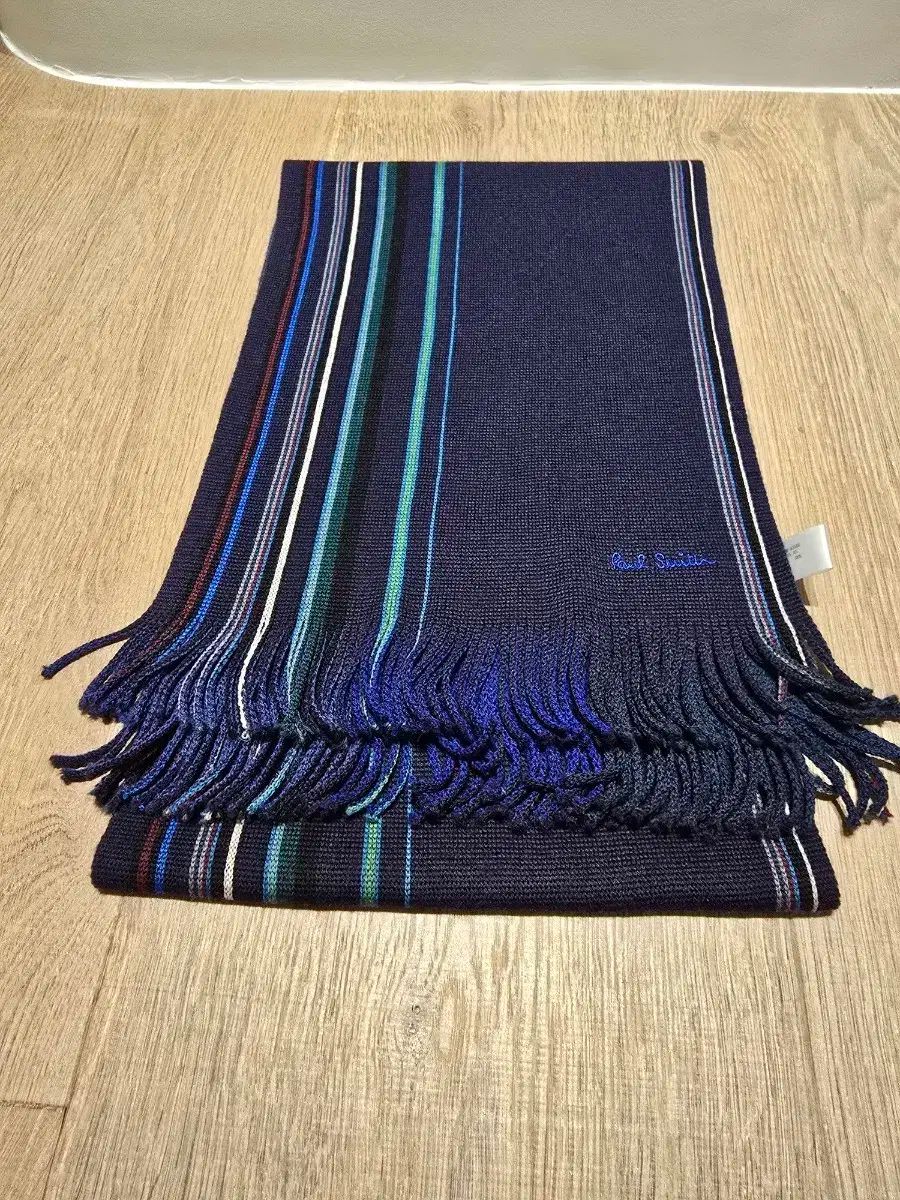 ウール 100 Paul Smith ポールスミス マフラーです ネイビー 背景に ポイント ストライプ