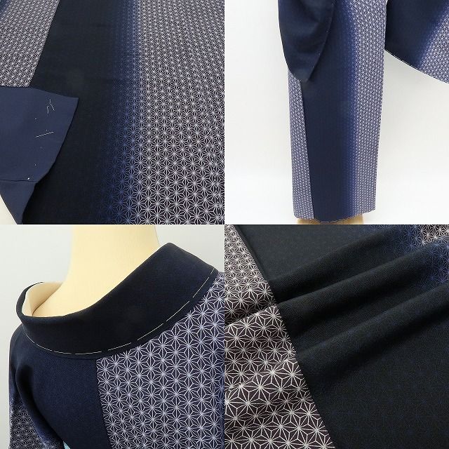 ■新品 正絹 麻の葉 トール・ワイドサイズ 仕付け糸付き 小紋 着物 A1718