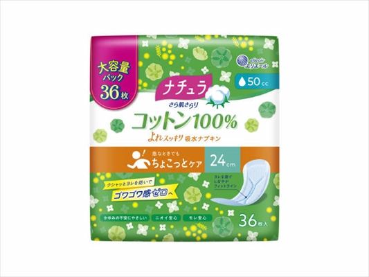 -18点セット ナチュラさら肌さらりコットン100%よれスッキリ吸水ナプキン24cm50cc大容量 生理用品