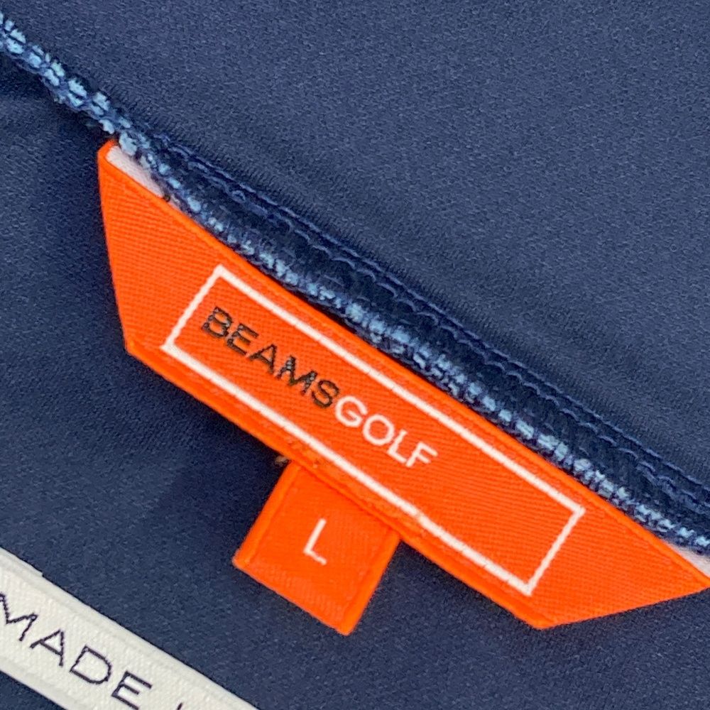 サイズ L BEAMS GOLF ビームスゴルフ モデル ハイネック 半袖Tシャツ ロゴ刺繍 ボーダー柄 ネイビー系 ゴルフウェア メンズ ストスト