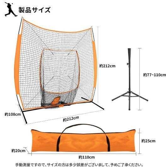 野球練習ネットバッティングネットピッチングネット折り畳み式バッティングティー付収納用バッグ付組立投球ボール受けネット打撃