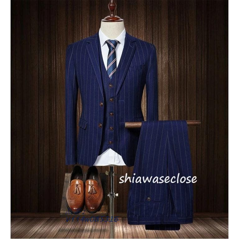 スーツ メンズ おしゃれ ビジネススーツ ストライプ カジュアルスーツ3ピーススーツ フォーマルスーツスーツセットアップ 洗える 細身紳士服通勤結婚式 vii 4 w 085316