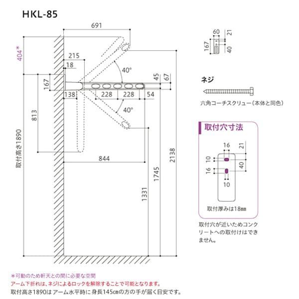 ホスクリーン 川口技研 物干し金物シリーズ HK型 HKL-85 2本入り 設置