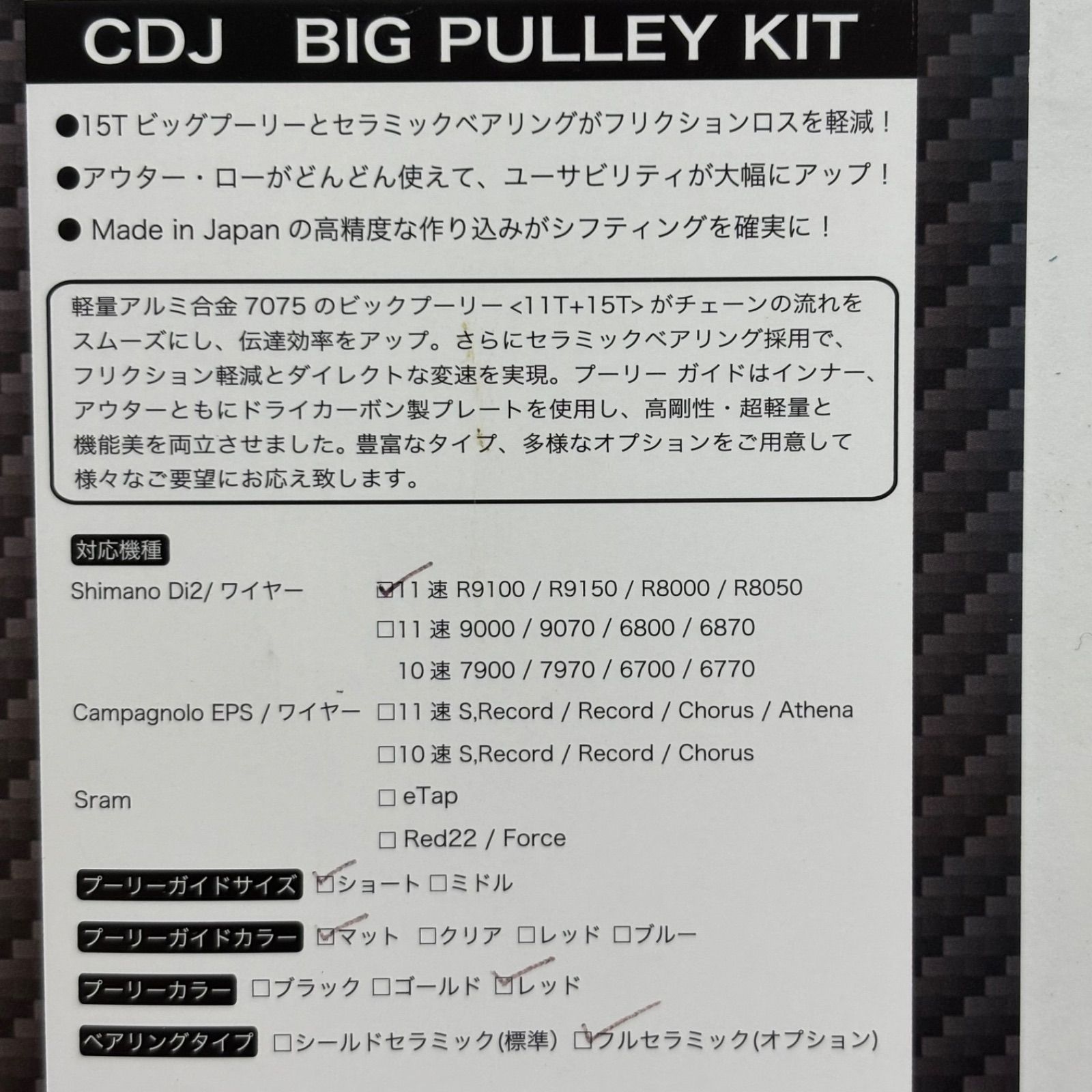 CDJ BIG PULLEY KIT カーボンドライジャパン ビックプーリーキット