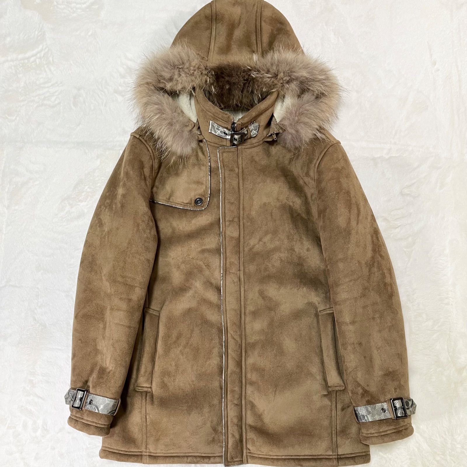 ◆表地は高級感のあるスエード調、内側はフカフカの毛布のような肌触りのフェイクファー、ファーフード部は脱着式となっており2wayで着こなせます