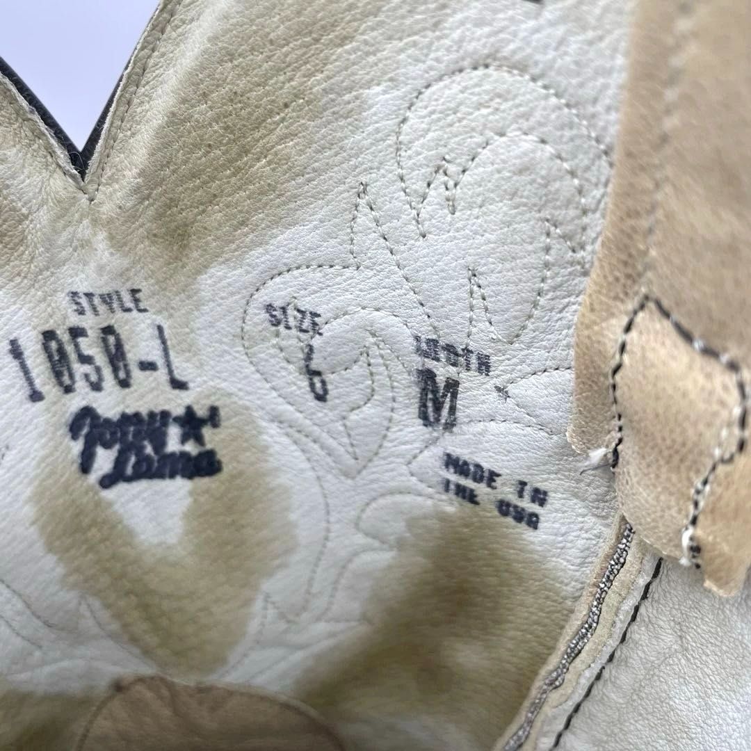 TONY LAMA ウエスタンブーツ 23 cm US 6 1050 L ベージュ×ブラック黒 インレイ装飾 レディース ヴィンテージ カウボーイブーツ テキサス トニーラマ トニー ラマ