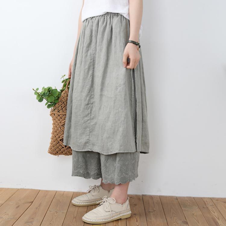 アシンメトリー レディース 綿麻スカート 変形 夏 春 ワイドパンツ キュロットスカート スカンツ 9分丈 スカート 麻混 ダンスパンツ ドレープ モード系 ボトムス 重ね着 ガウチョ きれ dkhsh 592004