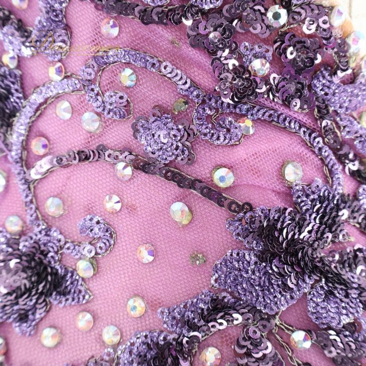 社交ダンス 衣装 silvia design シルビア スタンダード ドレス ワンピース デモ 競技 ダンス パーティ 発表会 紫 フリル レース 華やか ラベンダー パープル系 ホワイト系 感 かわいい 競技用 ロングドレス コスチューム