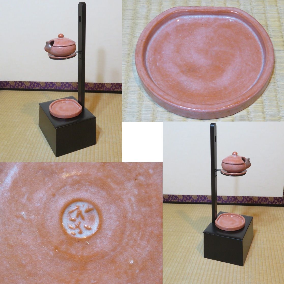 十月 特売品 夜咄道具 木製真塗 短檠と 松楽窯 赤楽すずめ瓦 茶道具〔税込 〕
