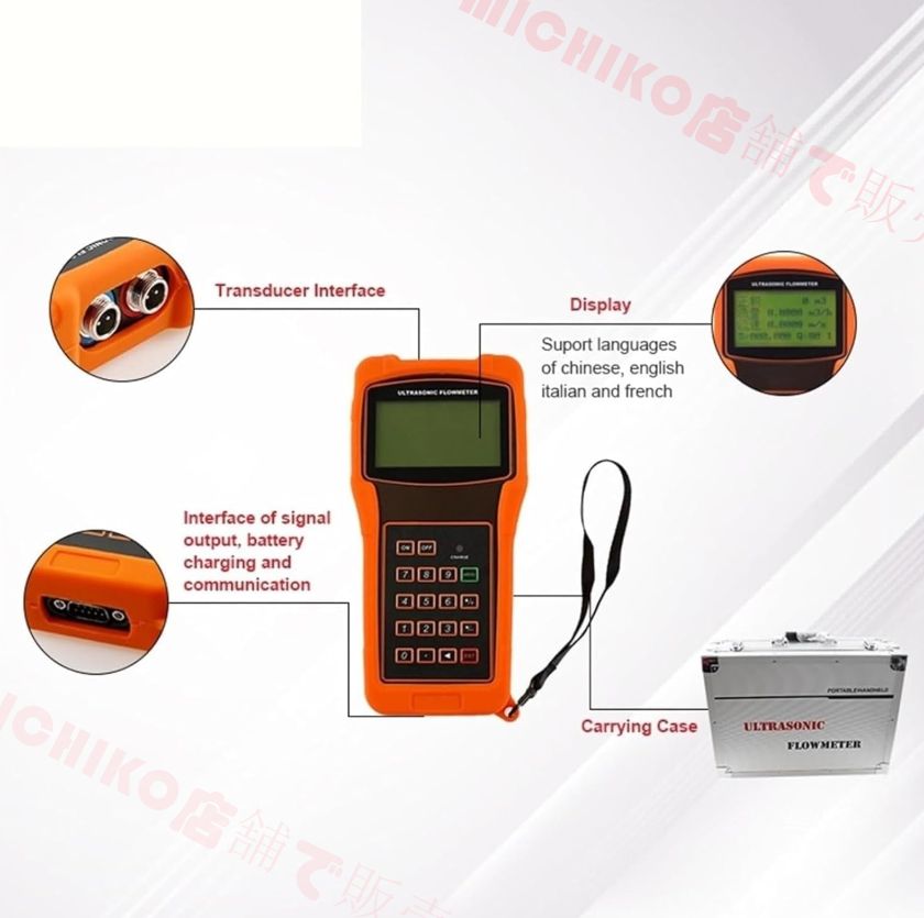 【超音波流量計】: ハンドヘルド超音波流量計は、液体流量の非接触測定を実現します。 センサーを配管の外壁に取り付けると流量測定が完了します。 パイプラインを破壊したり、生産を停止したりする必要はありません。