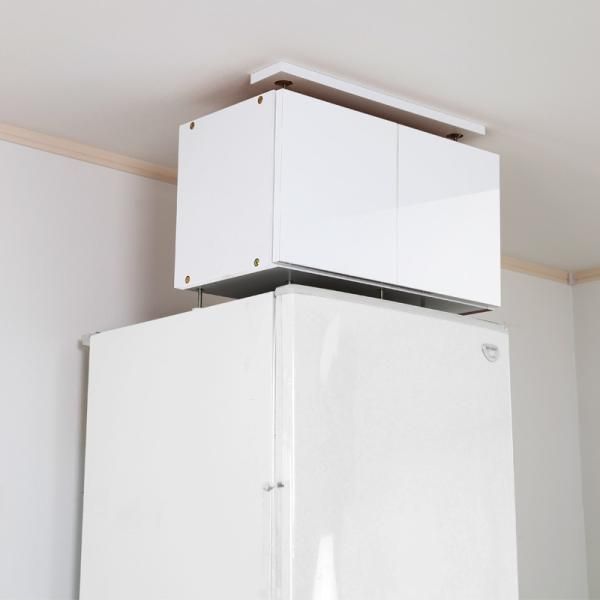 冷蔵庫用上置き 収納 棚 冷蔵庫用 つっぱり 突っ張り 転倒防止 耐震 防災 地震対策 収納棚 上置き棚 食器棚 本棚 戸棚 ドア 扉 ホワイト 白 シルバー おしゃれ