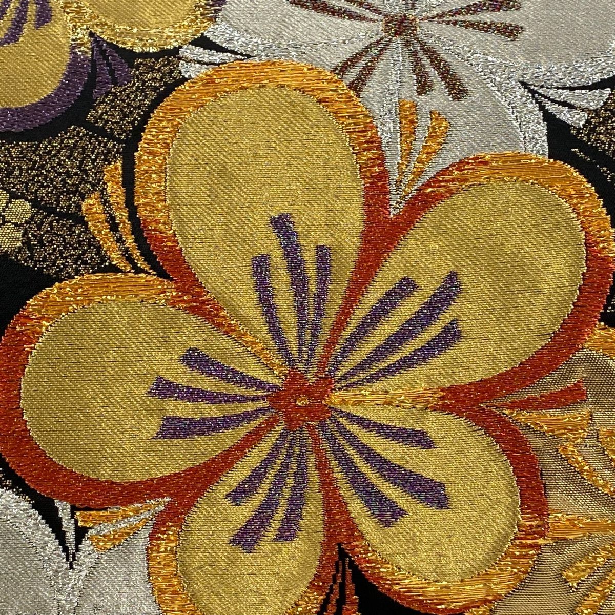 袋帯 秀品 梅 流水 金銀糸 箔 黒 六通 正絹