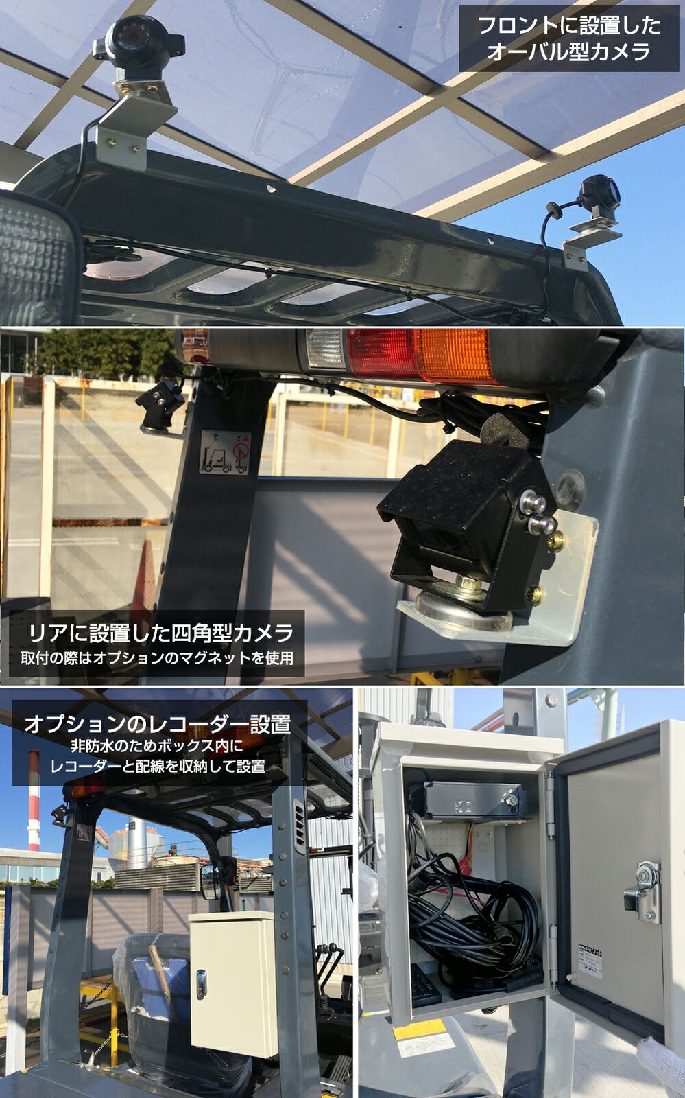 4つのカメラで接触を回避 DC 12 V~24 V 建設重機用 フォークリフト用 防水 カメラシステム センサー 接触回避 業務用 現場監督 デルタダイレクト D-2012