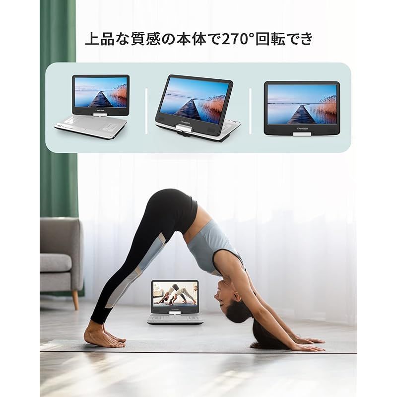 FANGOR ポータブルブルーレイプレーヤー 14 1インチ HDMI出力 270度回転式画面 充電バッテリー搭載 CPRM対応 途中再生 3電源対応 3時間連続再生 日本語取扱説明書 ホワイト
