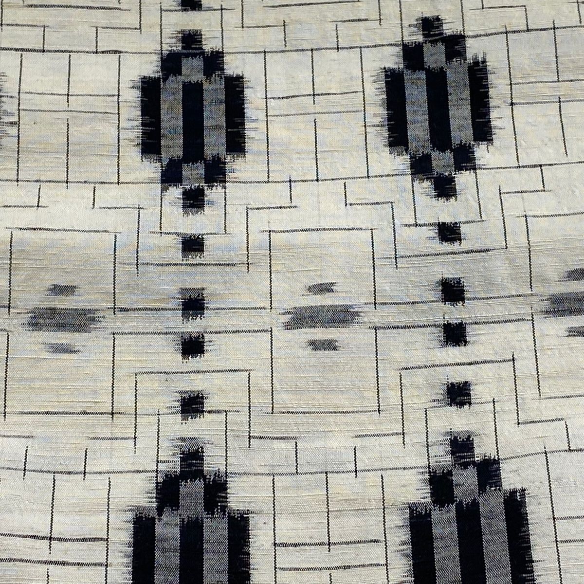 反物 秀品 紬 幾何学模様 クリーム 正絹
