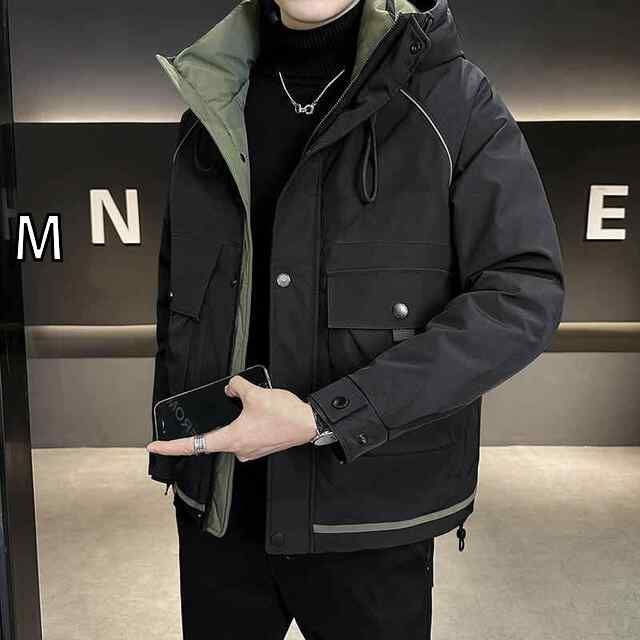 M 春 コーデ メンズ 用 服 シンプル ファッション オシャレ 大人 かっこいい 大きいサイズ ストリート 紳士服 ダウン ジャケット フード付き 厚手 暖かい カジュアル ワーク