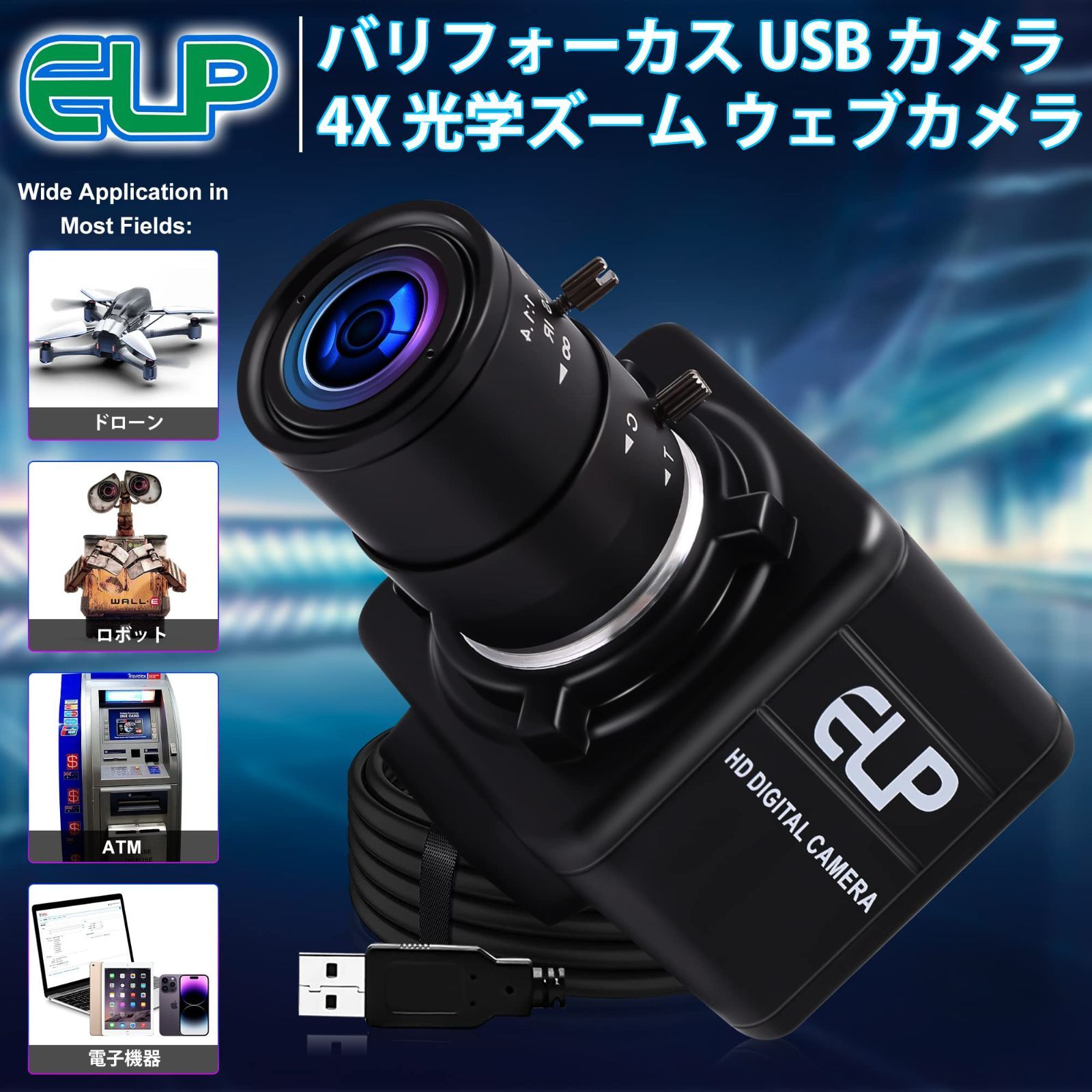 対応マウント ELP 光学ズーム Webカメラ 800万画素 4倍ズーム ウェブカメラ 1/4 mount 2.8-12mm可変焦点レンズ Web会議用カメラ