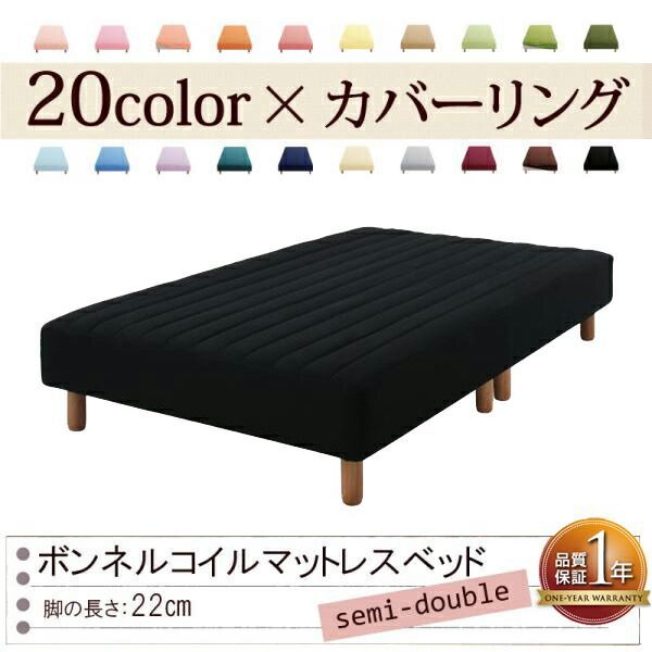 色 寝心地が選べる! カバーリングボンネルコイルマットレスベッド 脚22 cm セミダブル サイレントブラック