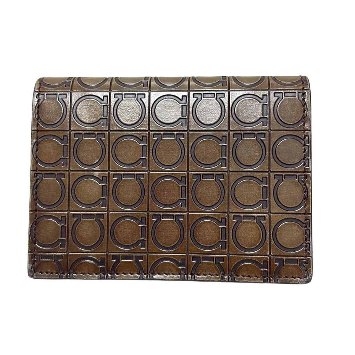 FERRAGAMO|SalvatoreFerragamo サルバトーレフェラガモ 名刺入れ ガンチーニ ダークブラウン 型押し加工 レザー