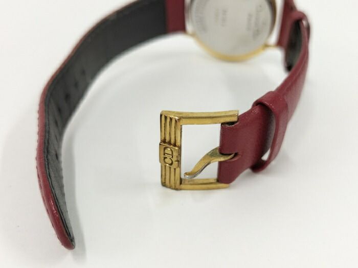 Christian Dior レディース 腕時計 クオーツ SS GP レザー レッド シェル文字盤 社外ベルト