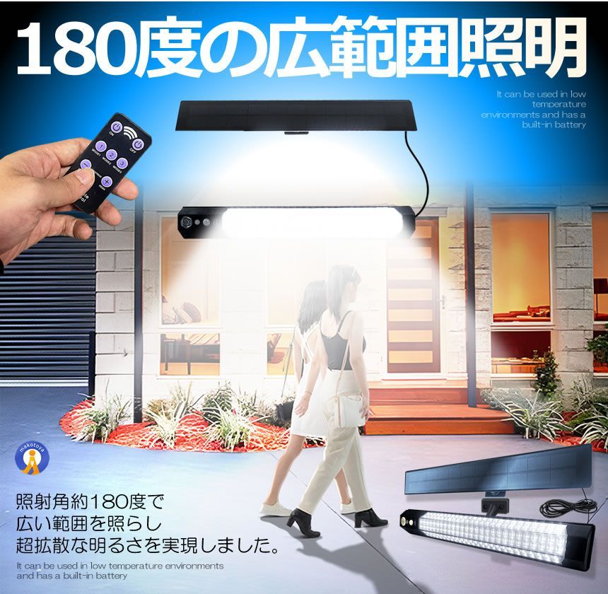 ソーラーライトは昼光色7700Kの超高輝度LEDを158個採用し