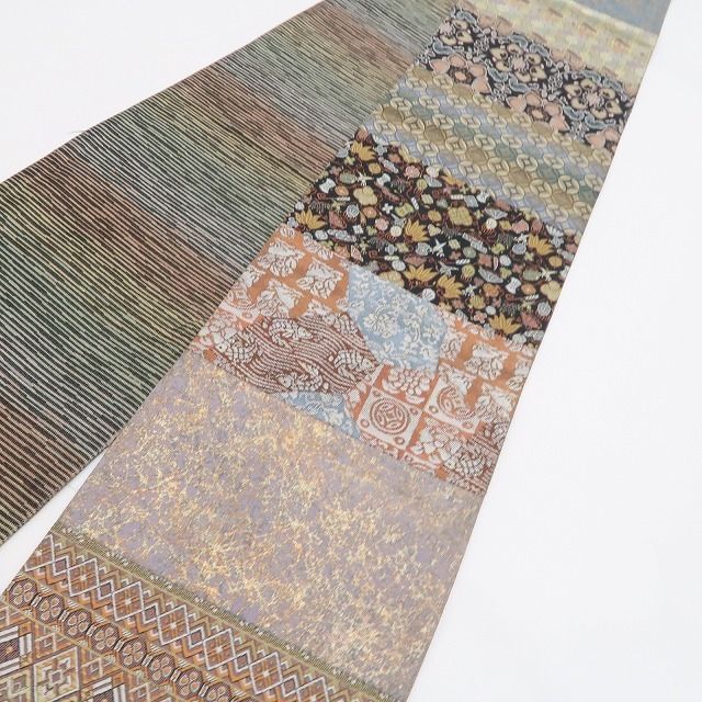 ❁tomihisa❁ 切ばめ 横段 リバーシブル 表と裏であれやこれやと両面使いで二人の自分”着物 正絹 半幅小袋帯 6533
