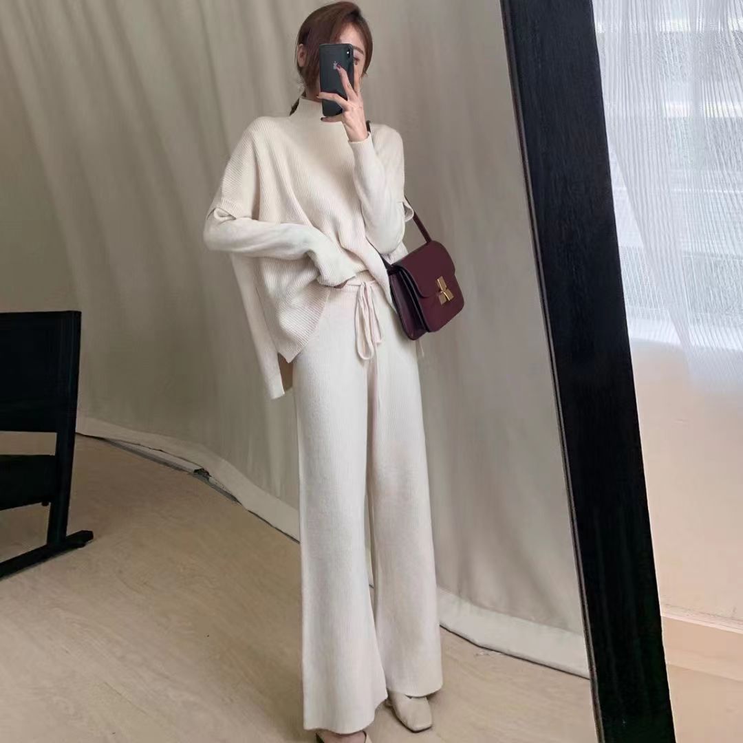 セットアップ 上下セット レディース 3点セット パンツセット ニット 秋 春 冬 ベスト 長袖 黒 セーター トップス ロングパンツ ウエストゴム エレガント ゆったりmikixz 53