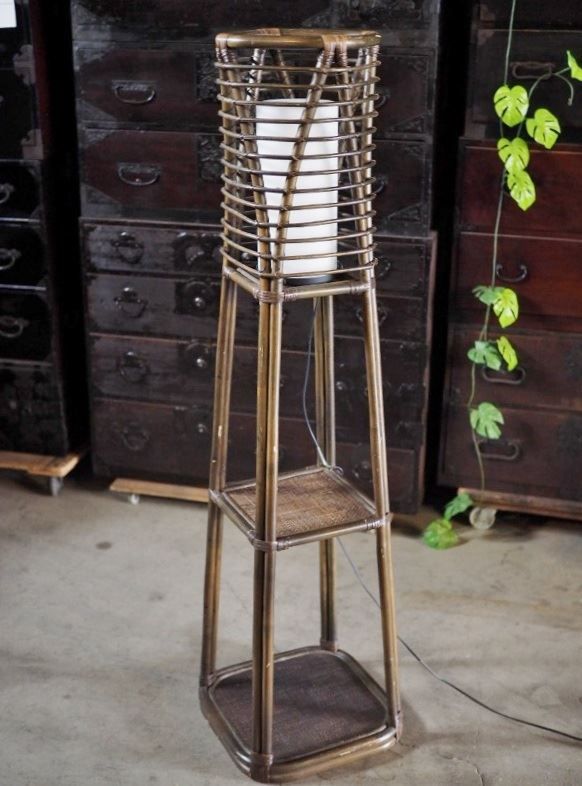 ラタン製の棚付きルームランプ 昭和後期 古録展 品番D 631