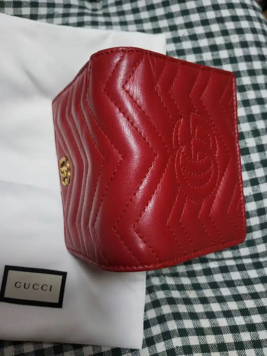 グッチマーモント二つ折り財布は赤です。GGのロゴが高級感をプラスし、キルトのディテールが際立ちます。カード用の収納スペースもたっぷりあり、実用的です。ご不明な点がなければ、すぐに安心してお支払いいただけます!硬貨と紙幣が入っています。正規品品です。シリアル番号があります