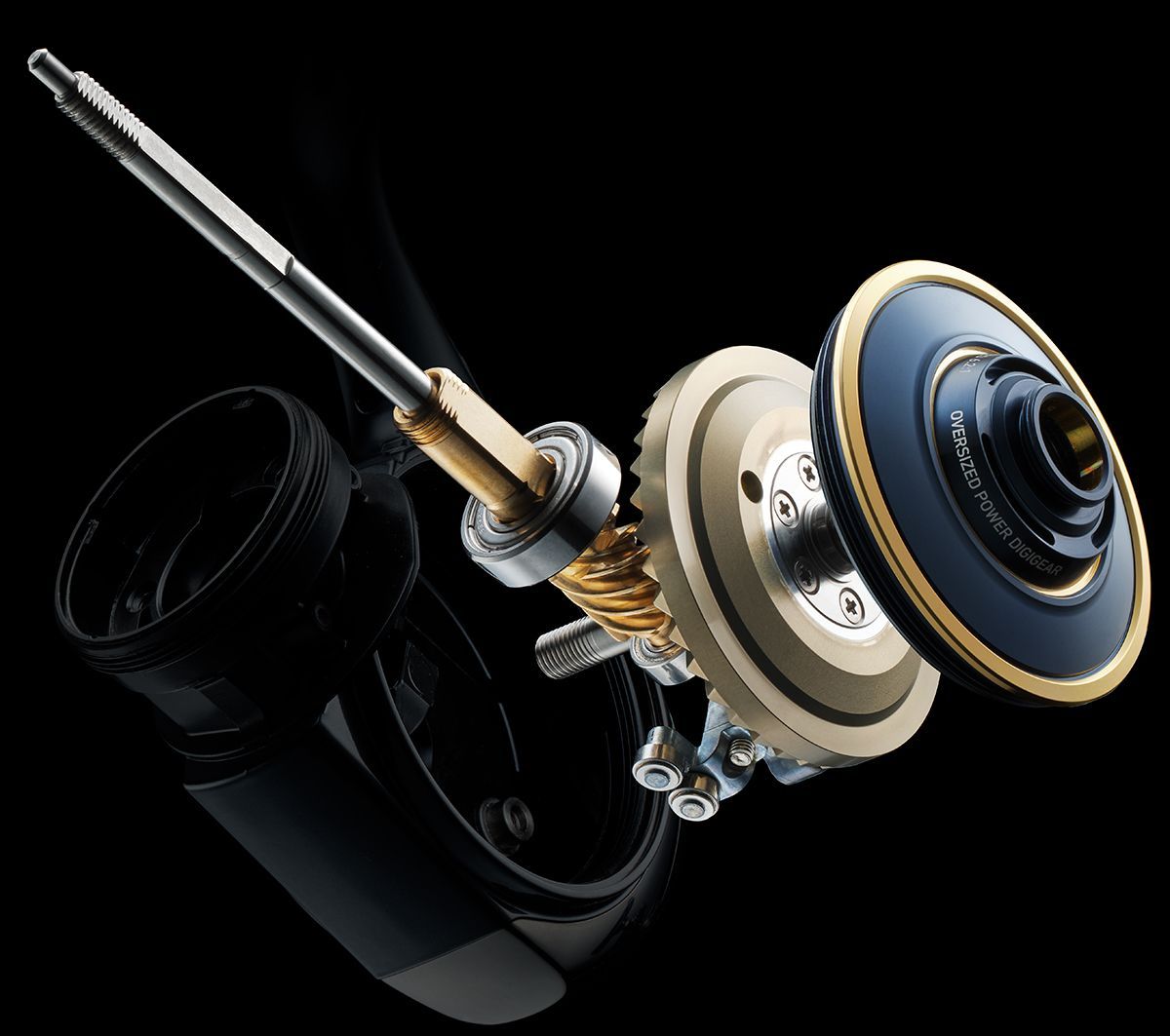 その[パワードライブエンジン]を土台に、フロントユニットを構成するのが 金属素材(AL)の[パワードライブローター]。合理的な球体形状で、低イナーシャを維持したまま、さらなる剛性のアップを実現。このローターに搭載される [クランクパワーベール]と[タフラインローラーシステム]との相乗効果により、的確なラインの送り出しと、スムーズな巻き取り動作への移行が可能となった。