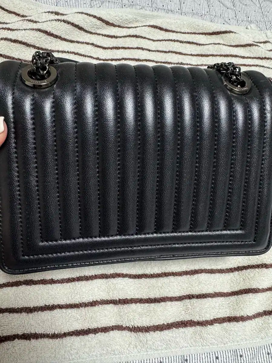 クロンヌ リーニア ブラック チェーンバッグです。キルティング デザインがエレガントな感じを与えます。チェーン ディテールまで高級感を加えました。コメントなければすぐ安全決済してください!