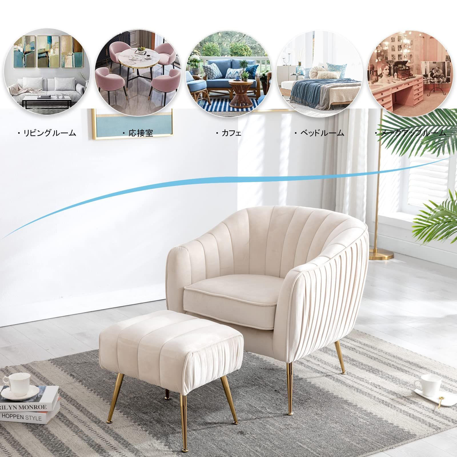 Altrobene 1人掛け ソファー オットマン付き ベルベット ソファ モダン 一人暮らし 座り心地が良い カウチ 組み立ても簡単 リビングソファ ベージュ