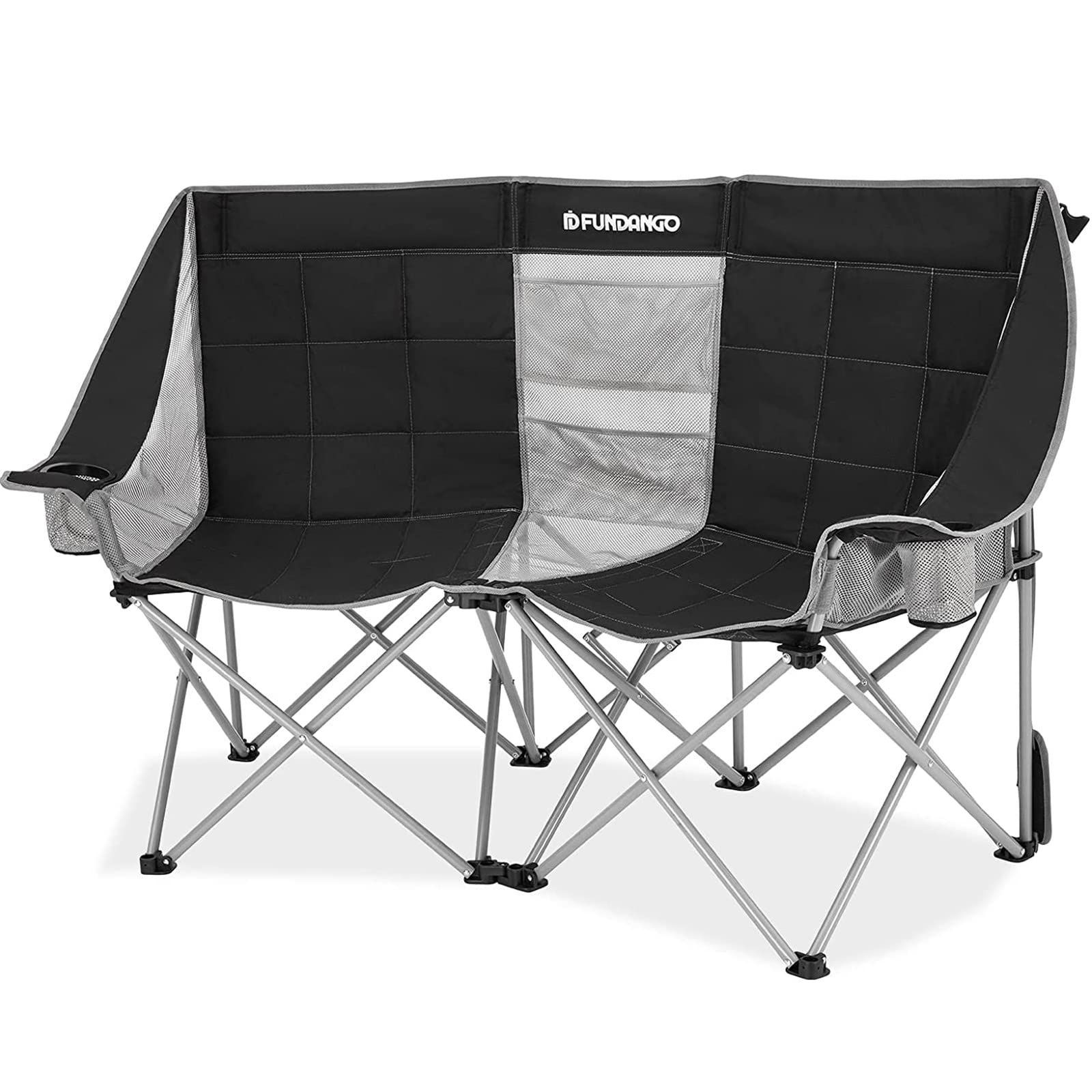 FUNDANGO 折りたたみ椅子 アウトドア 心地二人用 キャンプ チェア 2人掛け コンパクトカップルチェア 収束式 瞬間収納 ソファチェア カップホルダー 収納バッグ 付き 釣り 登山 ガーデン 室内 より安定 耐荷重200kg