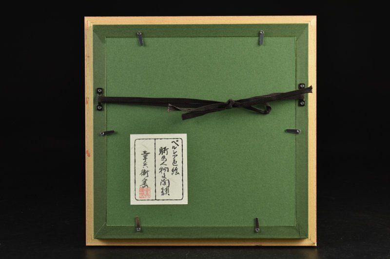 蔵A 5505 h 幸兵衛窯 ペルシア色絵騎馬人物文 陶板額装 加藤卓男