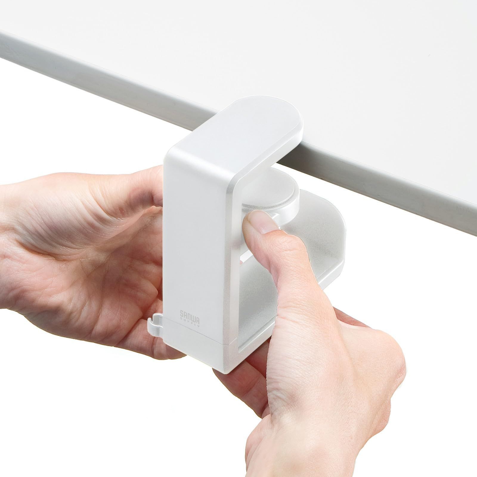サンワサプライ ヘッドホンフック 360°回転 バネ式クランプ ホワイト PDA-STN18W