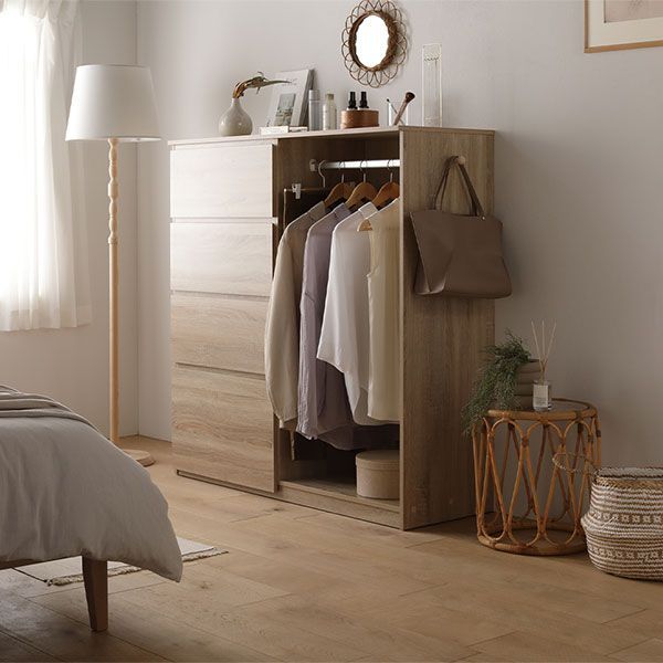 チェストとハンガーが1つになって、省スペースで大容量の収納力。