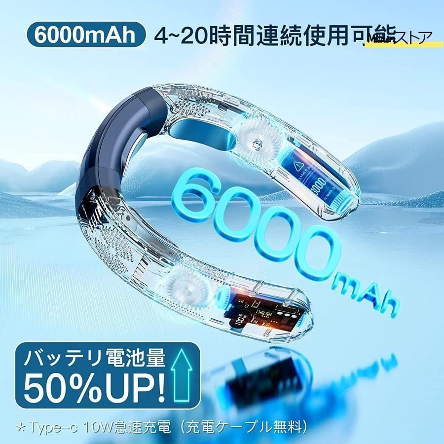 ネッククーラー 首掛け扇風機 ネックヒーター ネックファン 羽なし 3つ冷却プレート 半導体冷却 最強 6000 mAh大容量 携帯用扇風機 電池残量表示 冷風