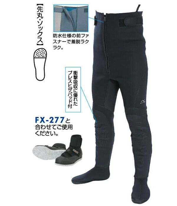 阪神素地 ハンシンキジ FX 652ドライタイツ 完全防水 膝パッド付き 丈夫 先丸 釣り フィッシング フローター 作業 水仕事 水産 清掃 農業