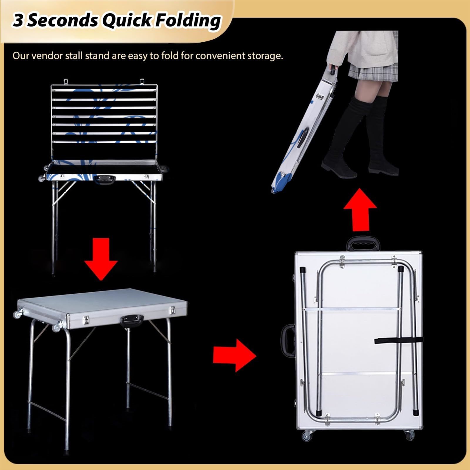 【 折り畳み式ベンダーカート 】: 通りのキオスクのブースはすぐに折るためにちょうど 30 秒かかります。収納に便利な折りたたみ式-車のトランクや地下室、物置などに簡単に収納できます