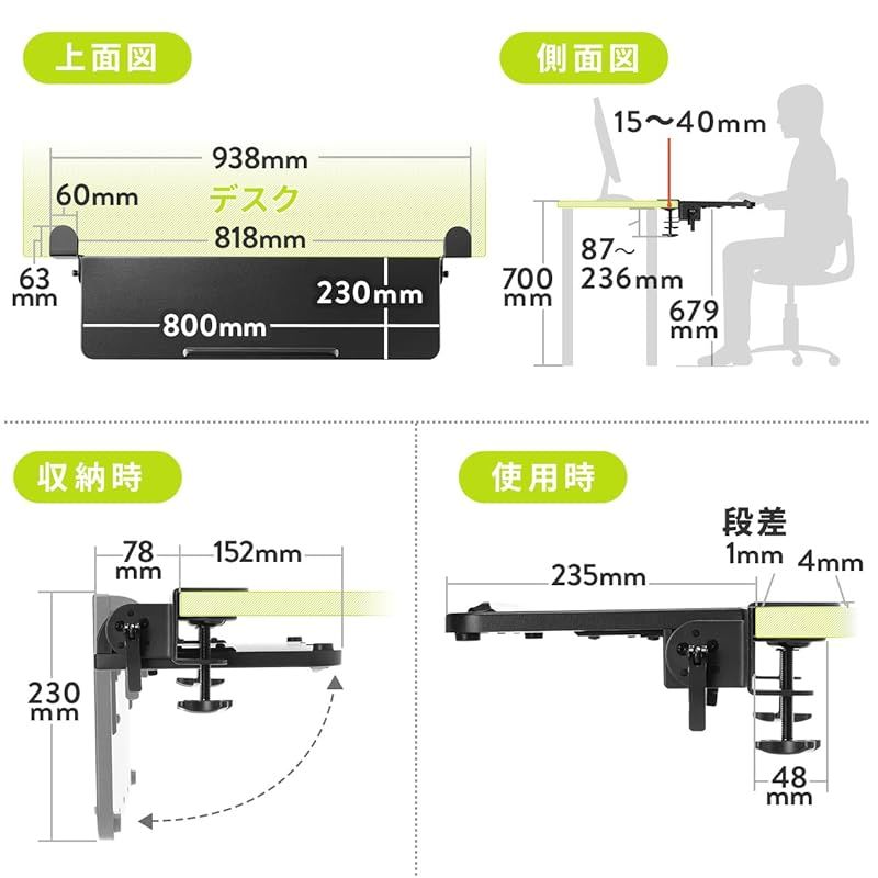 商品名:【新品】 サンワダイレクト デスクエクステンダー デスク 拡張 後付け 折りたたみ クランプ固定 【天板:幅80×奥行23cm】 ブラック 100-KB018BK