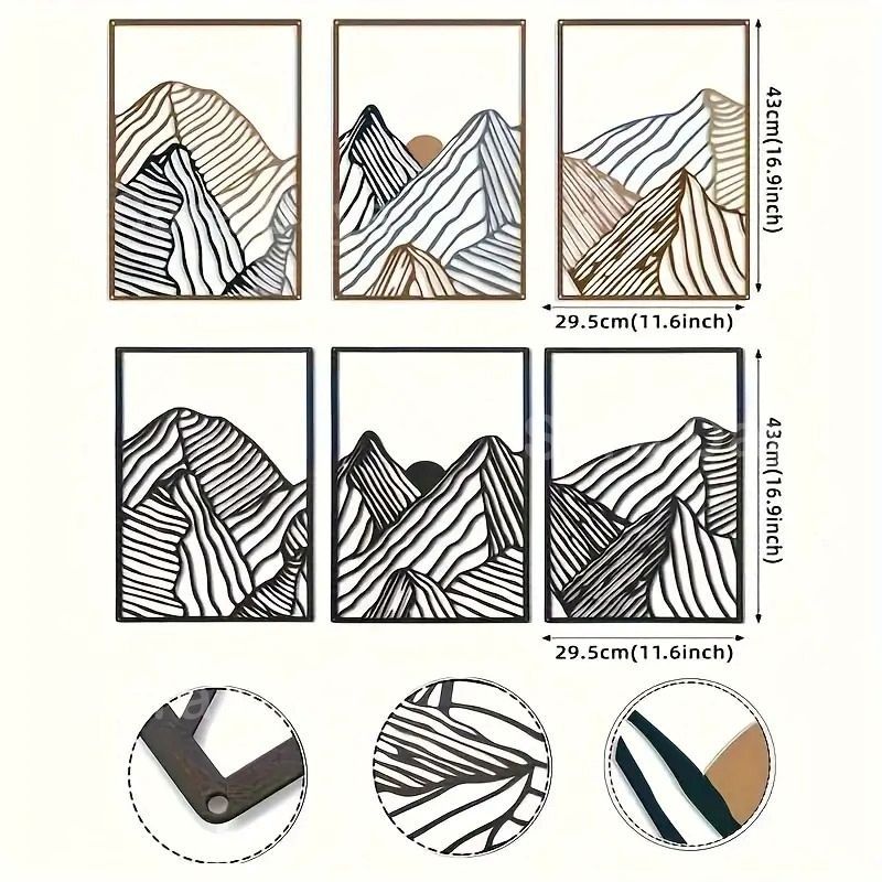 ウォールアート 3点セット マウンテン 風景 メタル おしゃれ モダン 抽象 インテリア 北欧 山 日の出 壁飾り 長方形 切り絵風 モノトーン ブラック 色付き 金属製 29.