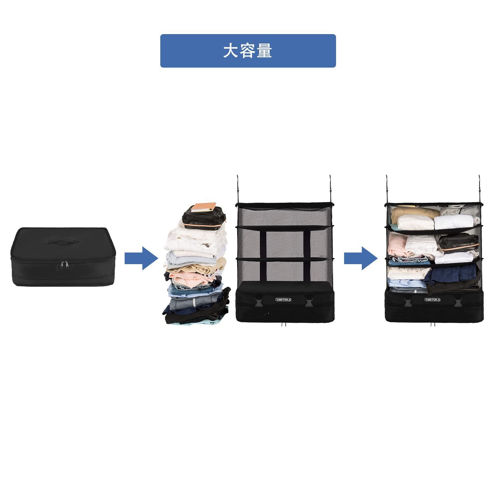 タビトラ 収納ボックス 吊り下げ インナーバッグ 衣類ラック 収納 旅行 出張 クローゼット 省スペース 大容量 衣装ケース 4段 オーガナイザー セット ブラック L XL