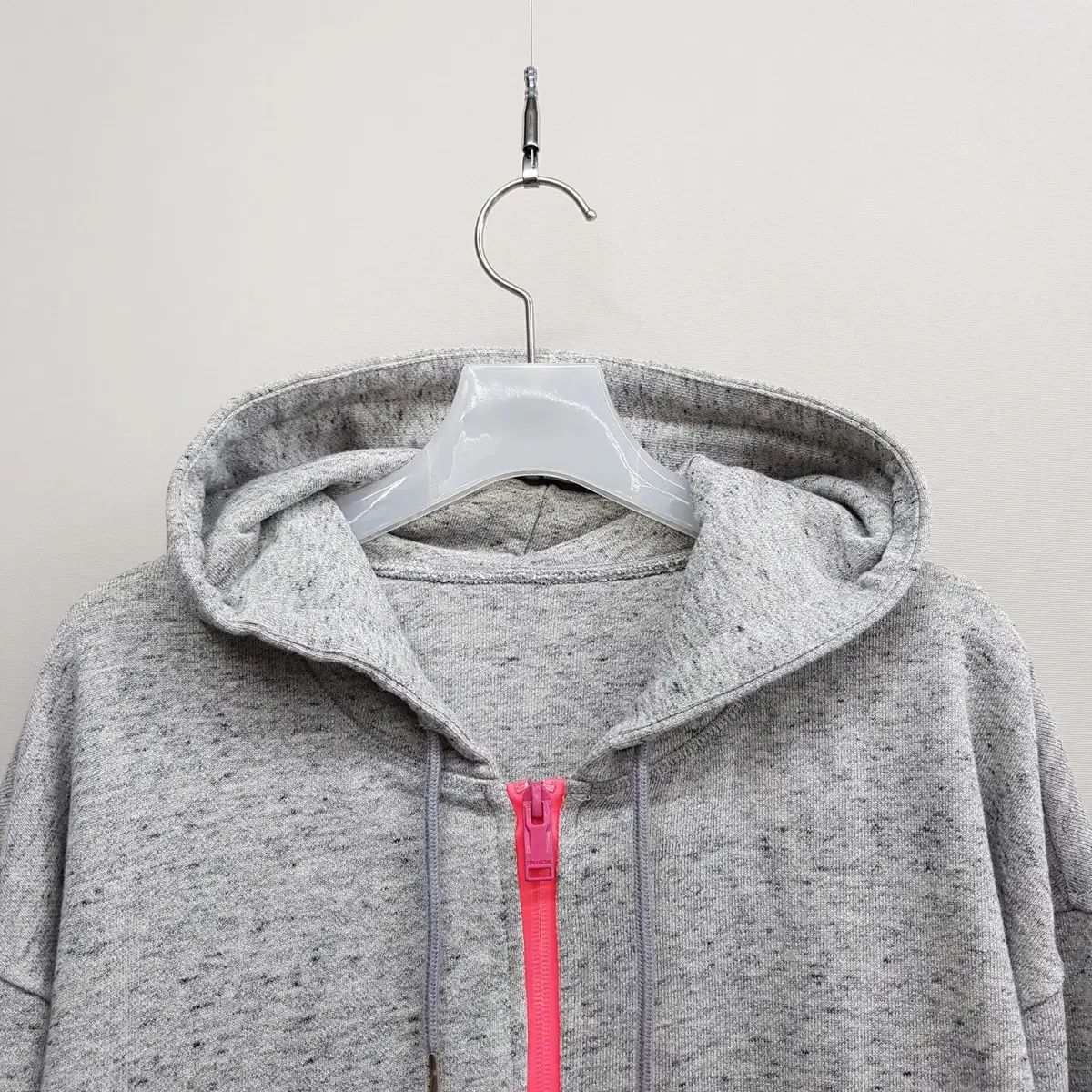 >特徴:グレーの背景にピンクのファスナーディテールがアクセントになっており、カジュアルながらトレンディなムードを演出しています。フロントポケットにはロックシックな感性を表現するスタッズをあしらい、着心地の良いイージーウェアはもちろん、普段着にも最適なアイテムです。