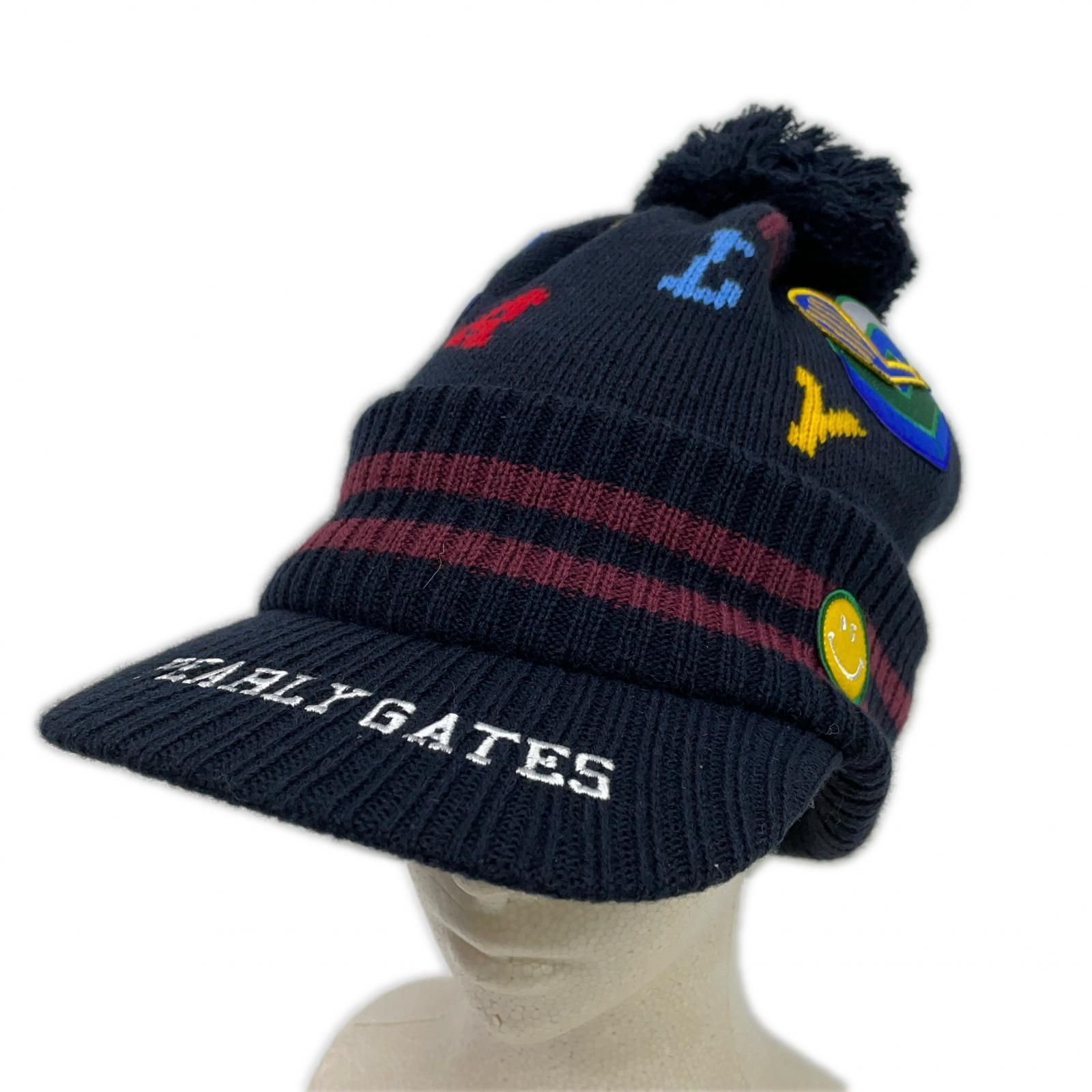 パーリーゲイツ PEARLY GATES つば付ニット帽 フリー ネイビー 紺 ワッペンニットキャップ